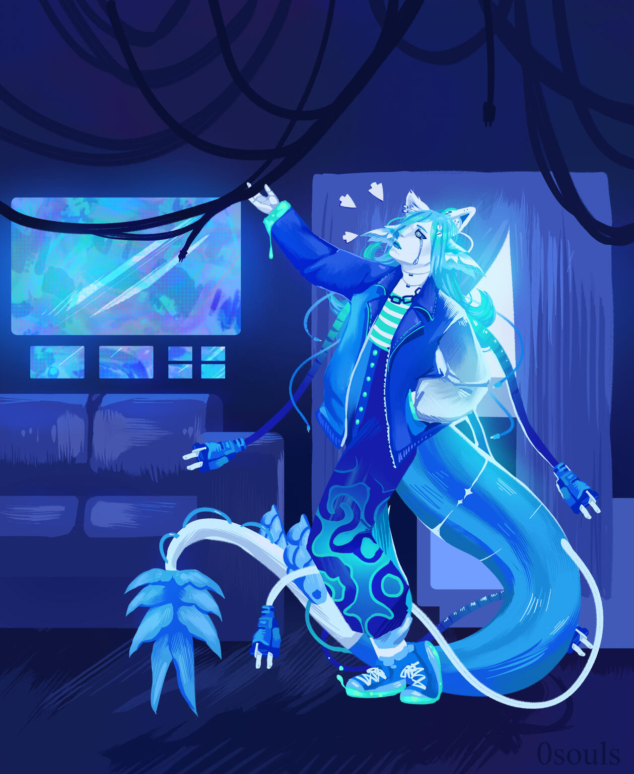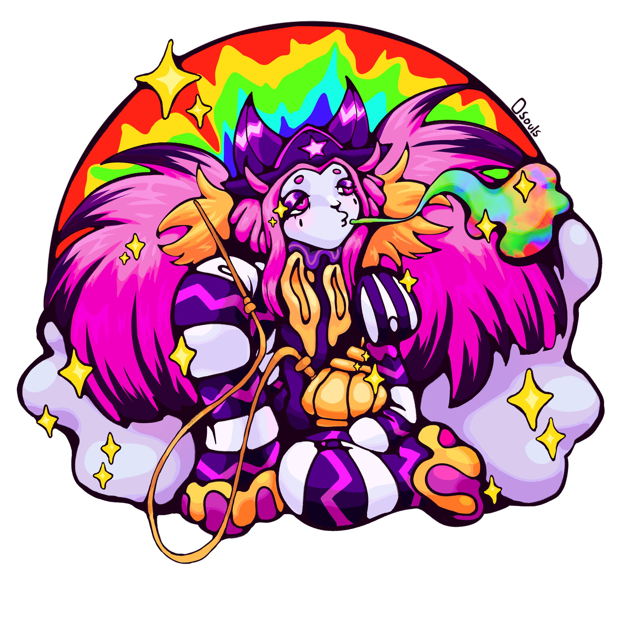 These commissions include a drawing of your character/s in a lineless colorful style. A background/scene is included. Simple props like phones & mugs are free. For more complex props there will be an additional fee.
